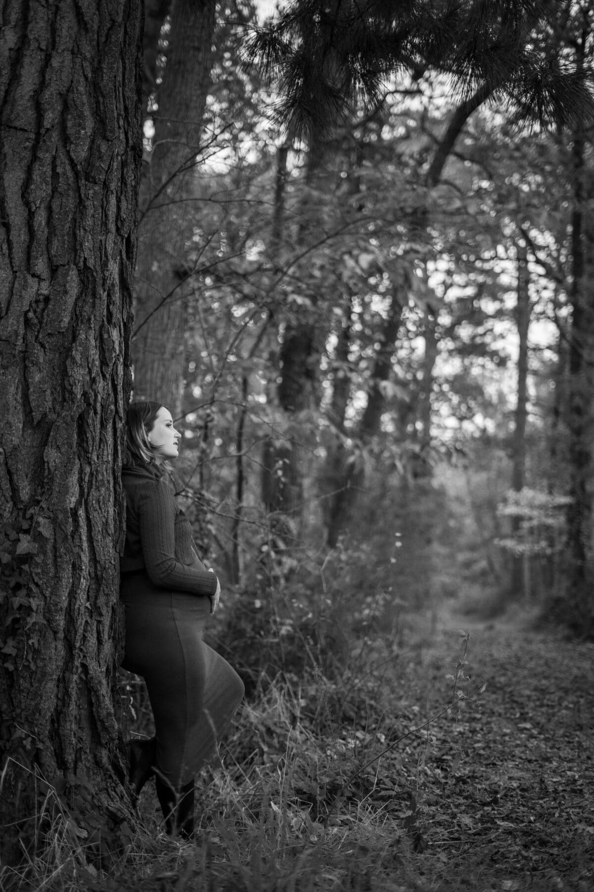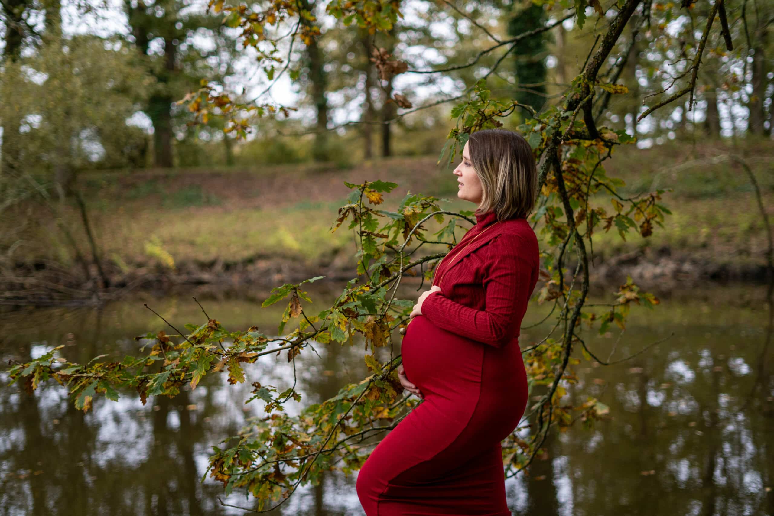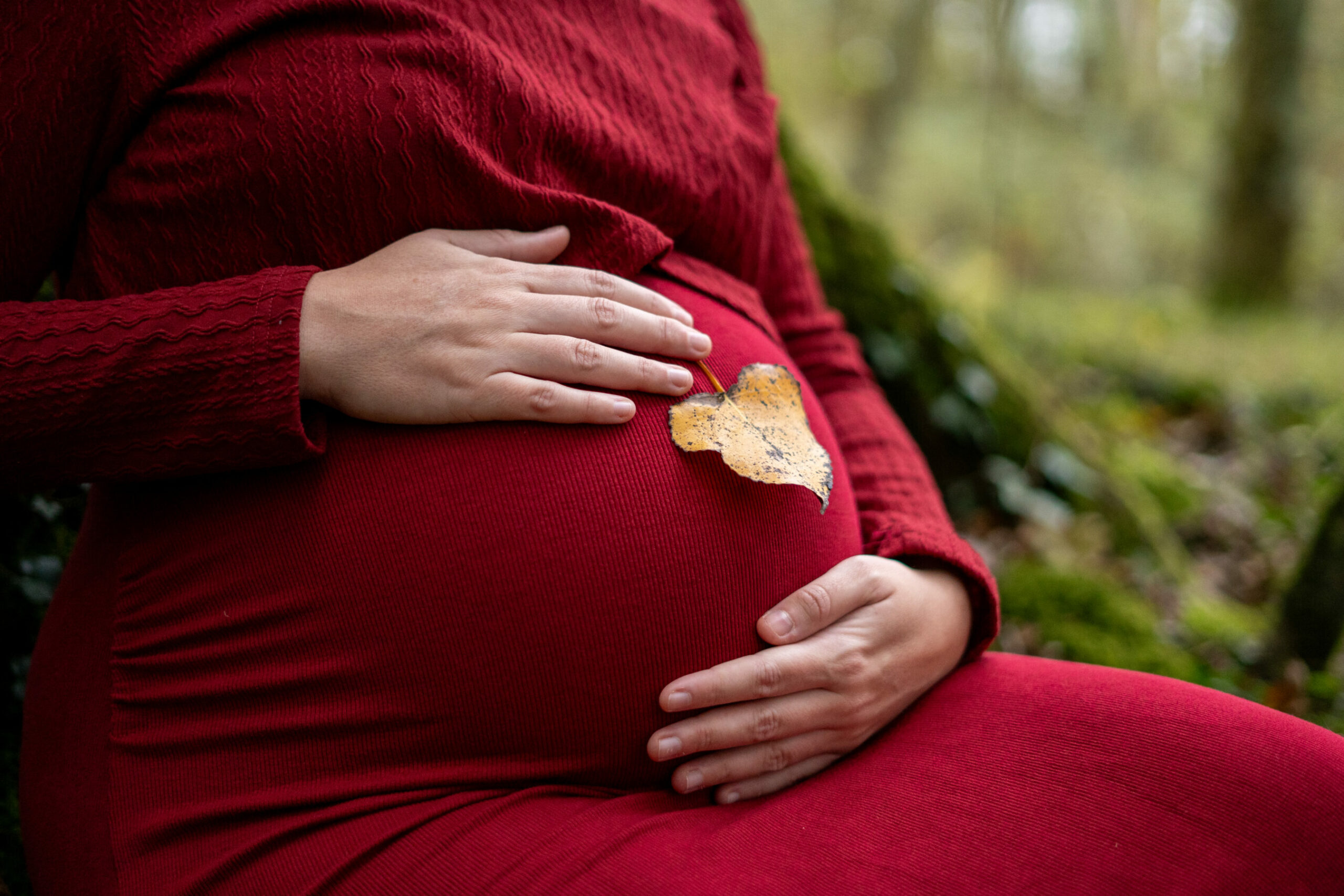 Marlène voulait une séance dans la forêt, seule avec son joli ventre pour une parfaite connexion avec elle-même et son bébé ! Elle a opté pour une splendide robe bordeaux qui s’accorde parfaitement avec les couleurs de l’automne !